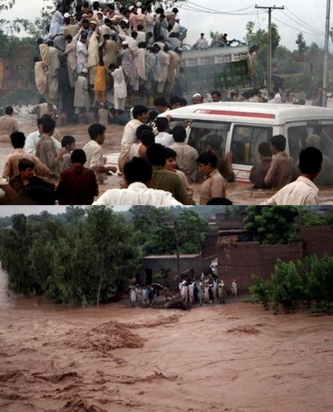 据报道,巴基斯坦西北部此次灾情最为严重。洪水使当地河堤绝提,数千人被困,需要解救。在过去24小时内,已有10人到60人因洪水丧生。
