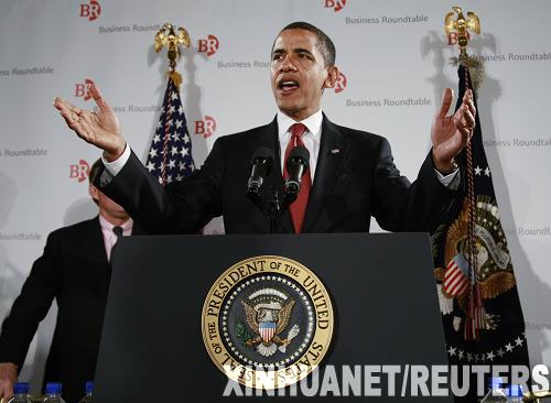 资料图片:2009年3月12日,在美国首都华盛顿,美国总统奥巴马会见商界领袖时讲话。当天,奥巴马说,伊朗政府的政策和行动对美国的安全与利益构成严重威胁,为此美国对伊朗的制裁将延长一年。新华社/路透