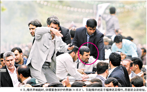 在外国媒体纷纷报道内贾德车队遇袭的消息后,伊朗新闻电视台报道称,伊朗总统办公室的新闻联络人4日否认总统内贾德的车队当天遭到手榴弹袭击,称一些媒体报道不实。该联络人说,所谓的爆炸不过是“爆竹”而已。
