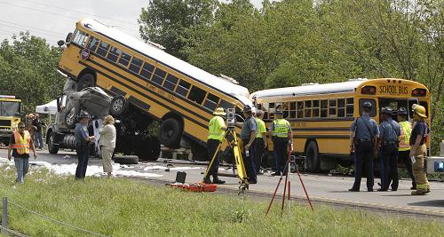 密苏里交通管理当局称,事故发生在当地时间上午10点15分,一辆校车与一辆小型卡车相撞后,另外一辆校车又撞在前辆校车后部。两校车上都满载学生。