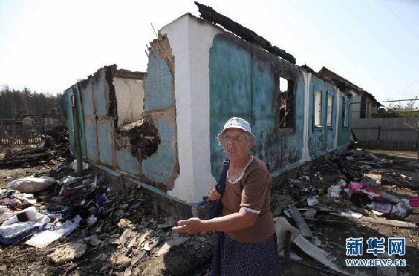 资料图片:8月1日,在俄罗斯的沃罗涅日,一名妇女站在被大火烧毁的房屋前。 新华社/法新