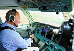 8月10日,俄总理普京坐在一架直升机副驾驶座上参与灭火。