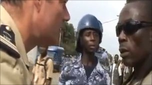 视频网站YouTube近日发布一段录像显示,法国军官罗穆亚尔德·莱通多与多哥摄影记者迪迪埃·勒杜发生争执,莱通多要求对方删除有关他向当地警方投诉的照片,遭到拒绝后,莱通多威胁砸碎勒杜的相机并对其进行抓捕。