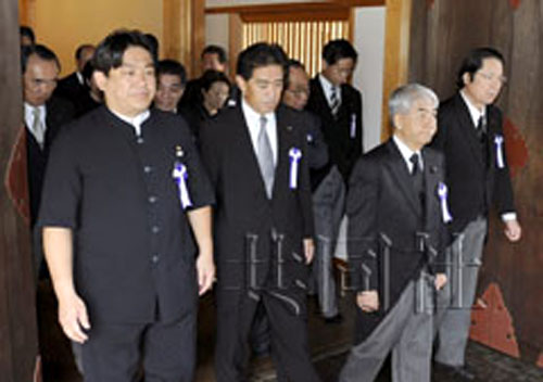 据介绍,包括该议员会的成员在内,共有40余名国会议员在上午进行了参拜,另有约50名国会议员派代表参拜。民主党参议员羽田雄一郎、日本遗族会会长古贺诚(自民党前干事长)、“奋起日本”党代表平沼赳夫等集体参拜。此外,自民党总裁谷垣祯一及前首相安倍晋三也分别进行了参拜。