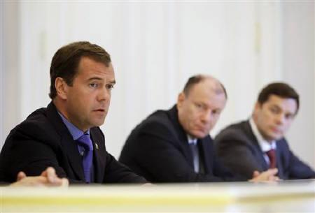 梅德韦杰夫当天召集企业界大亨们来到他在索契的黑海夏季寓所,这些大亨包括全球最大铝业公司俄罗斯铝业老板欧柏嘉,以及镍矿集团的大股东波塔宁。
