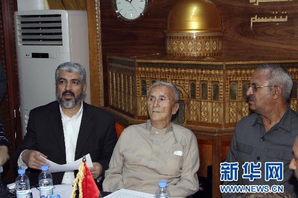资料图:8月7日,巴勒斯坦全国委员会最高后续行动委员会主席巴萨姆·沙克阿(中)、巴勒斯坦伊斯兰抵抗运动(哈马斯)政治领导人迈沙阿勒(左)与解放巴勒斯坦人民阵线(总指挥部)副总书记塔拉勒·纳吉在会议上。巴勒斯坦全国委员会最高后续行动委员会7日在大马士革召开会议后发表声明说,该委员会反对恢复巴以直接谈判。巴勒斯坦全国委员会最高后续行动委员会主席巴萨姆·沙克阿主持了会议,巴勒斯坦伊斯兰抵抗运动(哈马斯)政治领导人迈沙阿勒和参加“巴勒斯坦力量联盟”的另外7个巴勒斯坦派别领导人以及一些巴勒斯坦知名人士参加了会议。 新华社发(巴西姆 摄)