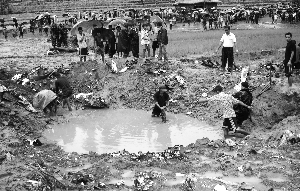 8月24日,尼泊尔村民与军队士兵在坠机地点收集飞机残骸。