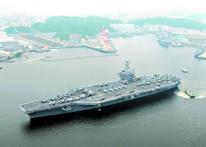 日本横须贺美军基地,前为“华盛顿”号航空母舰。