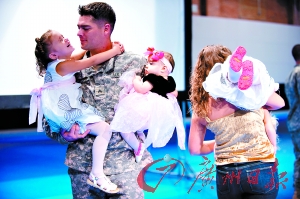 28日,一名离家整整一年的驻伊美军士兵终于迎来了与妻子和女儿的相聚。