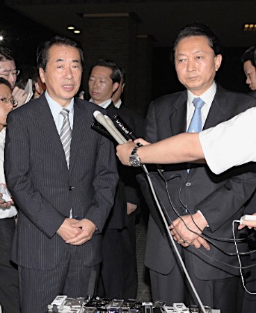 据报道,在会谈后举行的记者会上,菅直人表示,鸠山带来了小泽一郎的话,希望维持民主党长期以来“小泽一郎、鸠山由纪夫、菅直人”的“铁三角”的领导体制,考虑到参议院已经出现了野党控制过半数议席的局面,因此希望再加上民主党的参议院会长舆石东,形成一个新的集体领导体制。