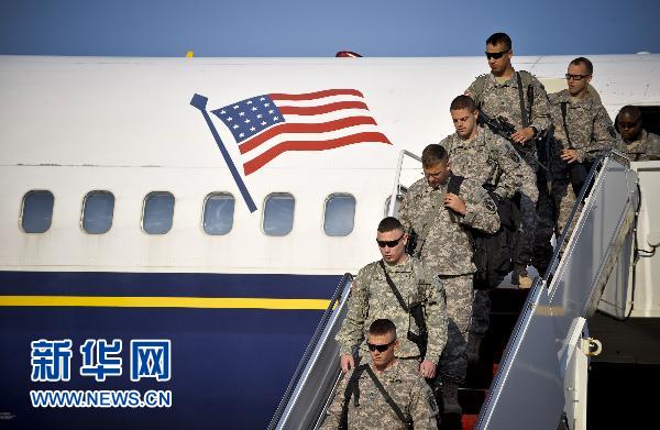新华社照片,华盛顿,2010年8月29日 部分驻伊美军战斗部队返回华盛顿。8月28日,在美国首都华盛顿附近的安德鲁斯空军基地,从伊拉克返回的美军士兵走下飞机。