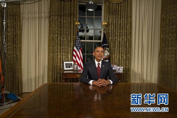 当地时间8月31日晚,美国总统奥巴马在白宫发表讲话,宣布驻伊拉克美军作战任务结束。 新华社/法新
