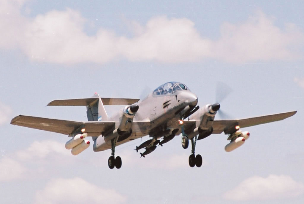 资料图片:“普卡拉”是阿根廷自研的涡轮螺旋桨攻击机。它远没有现代化的喷气式战机那么耀眼,但在英海马岛战争中却发挥了巨大的作用。不少当年参战的英军至今仍对普卡拉掠地攻击的惊险场景记忆犹新。