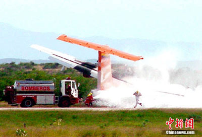 委内瑞拉国家电视台画面显示,飞机在一个垃圾场断成两截,机翼飞出几米外。有当地官员介绍,飞行员就在飞机出事前几秒曾发出呼救信号。这名没有透露姓名的官员表示,事故原因可能是因为飞机失控。