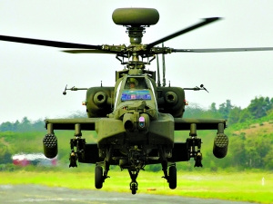 AH-64D,机长:15米 机高:3.8米;旋翼直径:14.6米;最大速度:293公里/小时;作战半径:480公里