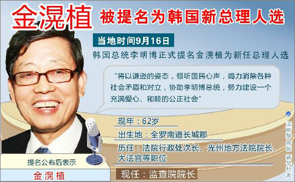 2010年9月16日 图表:金滉植被提名为韩国新总理人选 新华社发