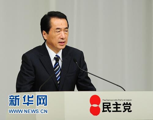 这是菅直人在日本东京当选民主党代表后发言的资料照片(9月14日摄)。新华社记者季春鹏摄