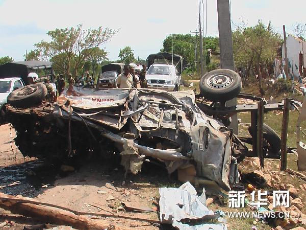 这是9月17日在斯里兰卡东部拜蒂克洛镇的爆炸现场拍摄的被炸毁车辆。新华社发