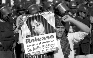 美国一家联邦法院今年2月认定西迪基夺枪射击罪名成立,在巴基斯坦引发争议。一些巴基斯坦人认为,西迪基无辜清白,在阿富汗和美国关押期间受到虐待。