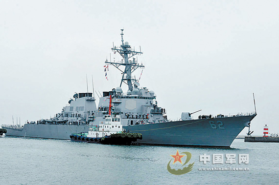 资料图:参加军演的“菲茨杰拉德”号导弹驱逐舰。