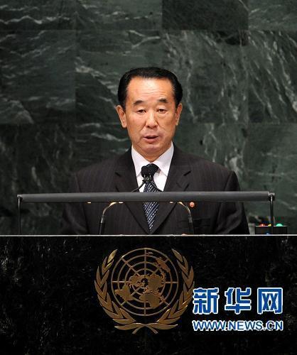 9月29日,朝鲜副外相朴吉渊在纽约联合国总部举行的第65届联大一般性辩论上发言。朝鲜副外相朴吉渊发言时说,只要美国不停止对朝鲜的武力威胁,朝鲜就不会放弃核威慑。新华社记者 申宏 摄