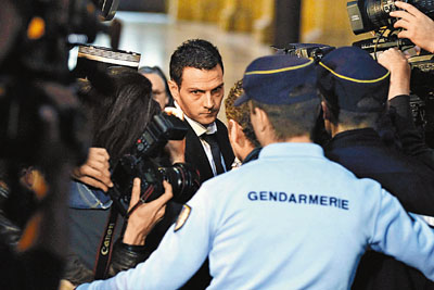 凯维埃尔5日抵达法院时被传媒包围。