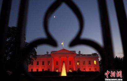 据外电报道,美国白宫暂时变成了一栋粉红色的房子,以此引起人们关注和乳腺癌的斗争。当地时间14日晚,白宫被大量粉红色灯光照亮,以纪念全美乳腺癌意识月。