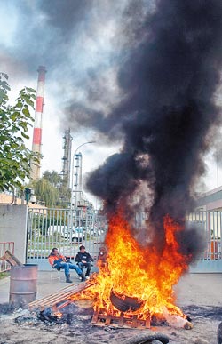 法国当局下令炼油厂工人复工,但工人在炼油厂要道烧轮胎。