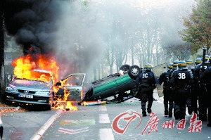19日,在巴黎等地区,示威者与警方发生冲突并焚毁汽车。