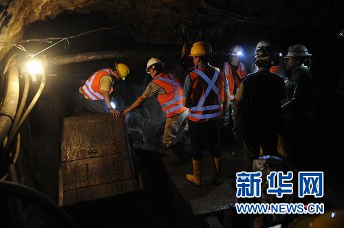 10月17日,一些救援人员与官员在厄瓜多尔埃尔奥罗省一座发生塌方事故的金矿地下150米处的坑道内工作。新华社/法新