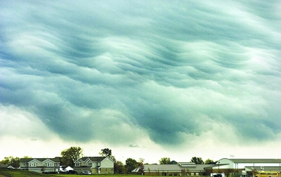 图为暴风带来乌云压顶的震撼景象,风暴所过之处一片狼藉。