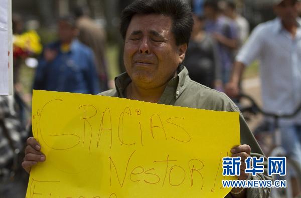 阿根廷总统府降半旗志哀,总统府门前围栏几乎为悼念标语完全覆盖。一条标语写着:“谢谢你,内斯托尔,你让阿根廷站立起来。你是一名真正的爱国者。”