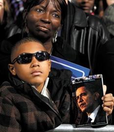 10月30日,在芝加哥市,一名美国儿童手持总统奥巴马的传记聆听奥巴马演讲。新华社/路透