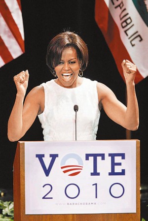 据香港《文汇报》网站报道,美国中期选举11月2日举行,被视为民主党秘密武器的美国第一夫人米歇尔·奥巴马也尽最后努力拉票。她连日穿梭美国西岸各个州,以“慈母”形象为不同候选人站台,很受选民欢迎。政治分析家认为,米歇尔的亲和形象,有助于推动未定投票取向的选民为民主党投票。