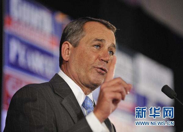 11月2日,美国众议院少数党领袖约翰·博纳在华盛顿发表演讲。美国2010年中期选举2日晚落下帷幕。出口民调结果显示,共和党不仅夺回众议院多数党地位,而且在民主党原本占优的参议院也扩大了“地盘”。而执政的民主党只保住了在参议院的微弱多数党地位,“两院分治”格局已经形成。 新华社记者 张军 摄