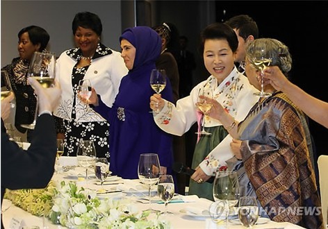 据韩国媒体报道,二十国集团(G20)首尔峰会于11月11、12日召开,而G20各国首脑的夫人们于当地时间11日晚7时,聚在了首尔龙山的Leeum美术馆里一起共进晚餐,韩国总统李明博的夫人金润玉女士亲自主持,并向各国夫人介绍了各式各样的韩国美食。