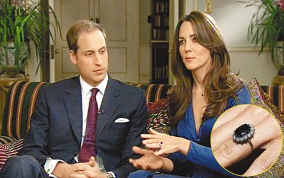 威廉王子与凯蒂向传媒讲述情路往事。凯蒂戴着戴妃的戒指。
