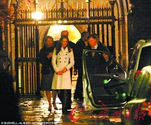 当地时间17日深夜,刚刚宣布订婚消息的米德尔顿在保安的陪同下出现在威斯敏斯特教堂。