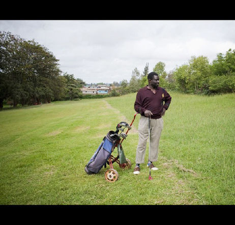 奥斯曼在皇家内罗毕高尔夫俱乐部的球场上打高尔夫球。这个高尔夫球场靠近基贝拉(后方可看见屋顶)。基贝拉是非洲最大的贫民窟,奥斯曼在基贝拉长大并仍生活在那里。刚开始他在球场上为外国人当球童,然后有位客人建议他到俱乐部的研究机构做杂工,现在他仍然在那里工作。(资料图片 环球网)