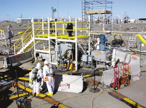 大约6周前,汉福德核工厂327号大楼的热室(强放射性工作室)被迁出来,大楼整体拆除工作开始。本月初,负责核工厂清扫工作的承包商在大楼废墟附近的地面上发现多处含有放射性物质的兔子粪便。工作人员在厂区内捕杀了18只兔子,其中有一只身上沾有放射物。