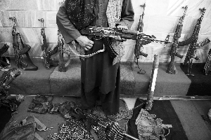 2009年10月14日,向阿富汗赫拉特省政府投降的塔利班武装分子缴械。