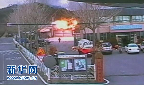资料图片:这张11月23日的电视截图显示的是韩国西部延坪岛上遭到炮击的瞬间。韩国和朝鲜当日下午在有争议的“北方界线”附近发生交火。 新华社/路透