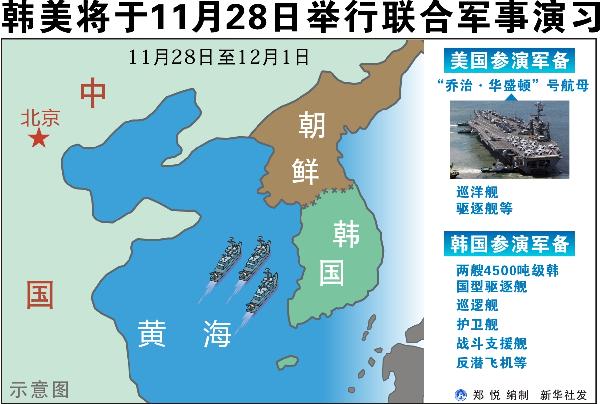 图表:韩美将于11月28日举行联合军事演习 新华社发