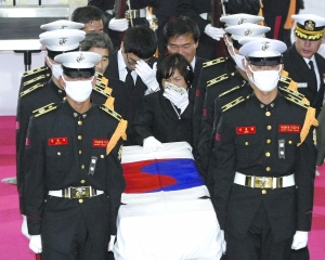 27日上午,两名阵亡士兵的遗体告别仪式在城南市的一家军队医院内举行。包括韩国总理金滉植、军方高级官员和阵亡士兵家属等数百人出席仪式。