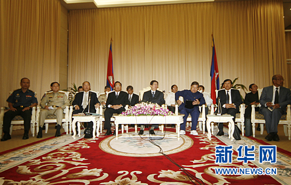 11月29日,柬埔寨副首相兼政府处置踩踏事故委员会主席索安(前右四)在金边举行新闻发布会,宣布钻石桥踩踏事故调查结果。柬官方当日正式公布钻石桥踩踏事故调查结果,称22日发生在金边钻石岛钻石桥上的惨案纯属因拥挤、恐慌引起相互踩踏,造成大量人员窒息的伤亡事件,与恐怖行为和刑事犯罪无关。该踩踏事件共造成了351人死亡,394人受伤。新华社发(披隆摄)