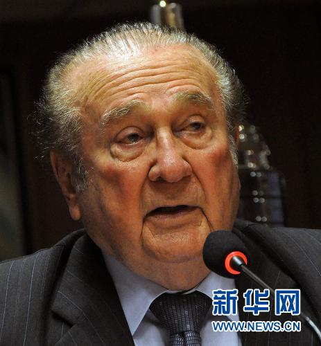 图为受到指控的当事人之一、巴拉圭人里奥兹在2009年5月8日在巴拉圭出席一场新闻发布会的资料照片。里奥兹担任南美足联主席24年之久,加入国际足联执委会的时间也长达12年。新华社/法新