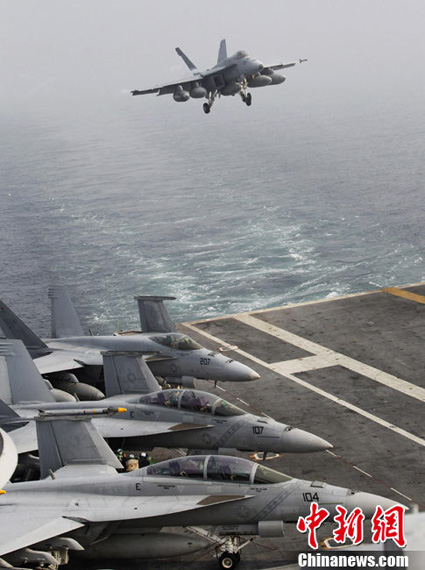 从上月28日开始进行的这次联合军事演习,是一次在海上进行的例行性演习。美国和韩国分别派出“华盛顿”号航空母舰(9.7万吨)和“世宗大王”号宙斯盾舰等10多艘舰艇,在西海进行每天24小时演习。