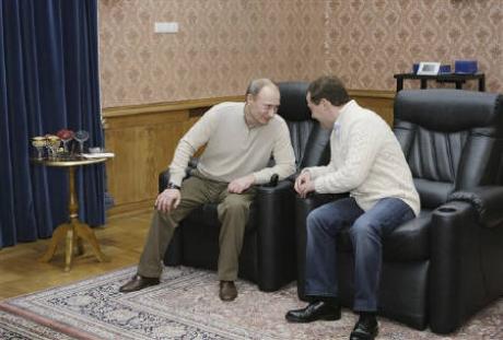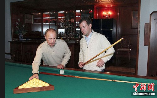 据路透社报道,俄罗斯总统梅德韦杰夫和总理普京3日晚在南部度假城市索契上演了一出令人诧异的“兄弟情”。两人不但一起打台球、看电影,甚至还都穿上了一件米色的毛衣。