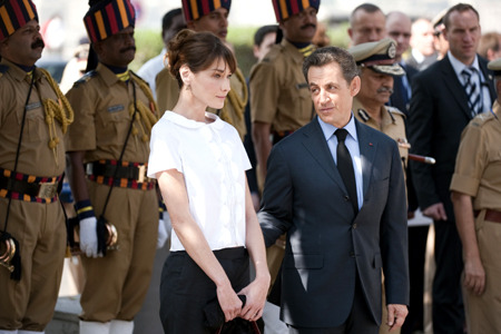 7日,萨科齐偕妻子布吕尼在印度孟买参加为孟买恐怖袭击遇难者举行的悼念仪式。