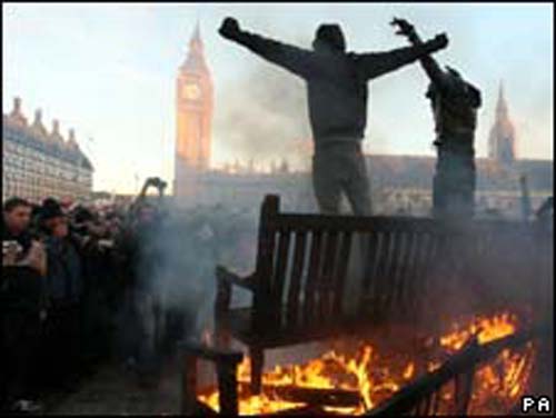 抗议学生对国会通过调升学费案,情绪激动,转向国会附近地区,热闹购物街牛津街的商家窗户被砸坏。连搭车经过的查尔斯王子伉俪,也被抗议者包围。